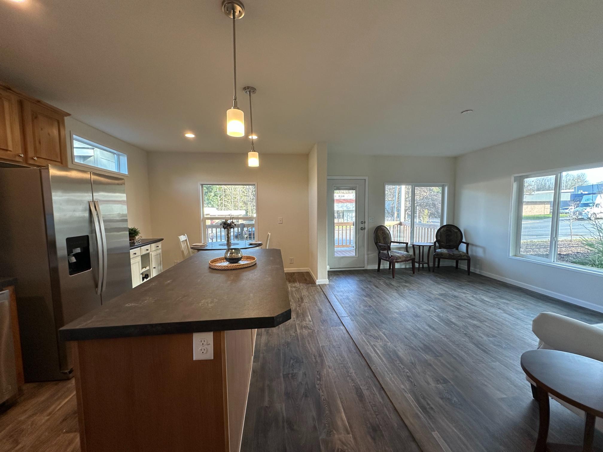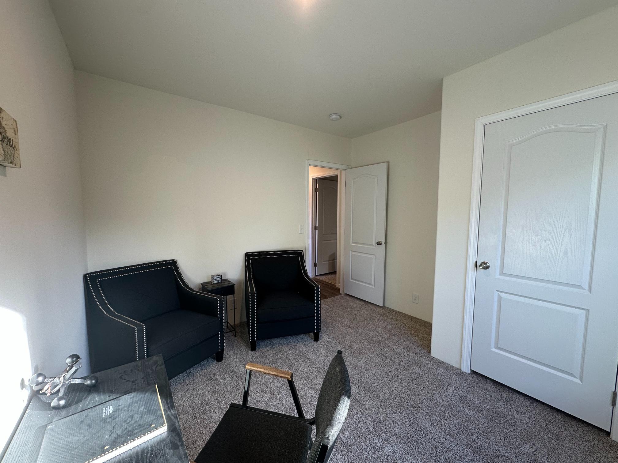 Front Door: 36" Inswing with deadbolt knocker and peephole